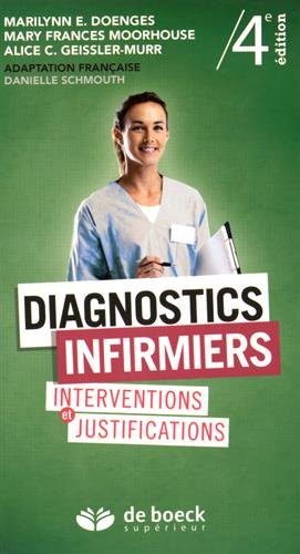 .Entièrement mis à jour, ce guide pratique inclut les diagnostics infirmiers acceptés par NANDA-I dans son édition de 2012-2014. Il renferme des outils indispensables à l'enseignement des soins infirmiers et à la prise de décision clinique de l'infirmière. Pour plus de flexibilité, la liste des diagnostics infirmiers est présentée dans l'ordre alphabétique au début de l'ouvrage, puis par modes fonctionnels de santé de Gordon à la toute fin. Pour chaque diagnostic infirmier on trouvera, dans l'ordre : la définition ; les facteurs favorisants ou les facteurs de risque ; les caractéristiques qui orientent le processus diagnostique de l'infirmière ; les résultats escomptés et les critères d'évaluation ; les interventions et leurs justifications ; l'information à consigner ; des exemples tirés de la Classification des résultats de soins infirmiers (CRSI [NOC]) et de la Classification des interventions de soins infirmiers (CISI [NIC]). Dans la présente édition, les auteurs se sont efforcés de classer les caractéristiques par ordre d'importance, de manière à faciliter le jugement clinique. Les interventions sont encore groupées suivant des priorités de soins, mais les justifications sont plus nombreuses et plus étoffées. Des exemples d'énoncés diagnostiques associés à plus de 460 situations se rapportant à des problèmes médicaux, à des interventions chirurgicales, à des épreuves diagnostiques et à des évènements de la vie, dans différents domaines de spécialisation, font l'objet d'un chapitre distinct. Enfin, le manuel contient un modèle d'instrument de collecte des données structuré à partir des modes fonctionnels de santé de Gordon et des exemples d'application. Toutes ces informations constituent une base de connaissances qui pourra faciliter l'enseignement et l'application de la démarche de soins et la rédaction du plan de soins infirmier, et contribuer à l'amélioration d.